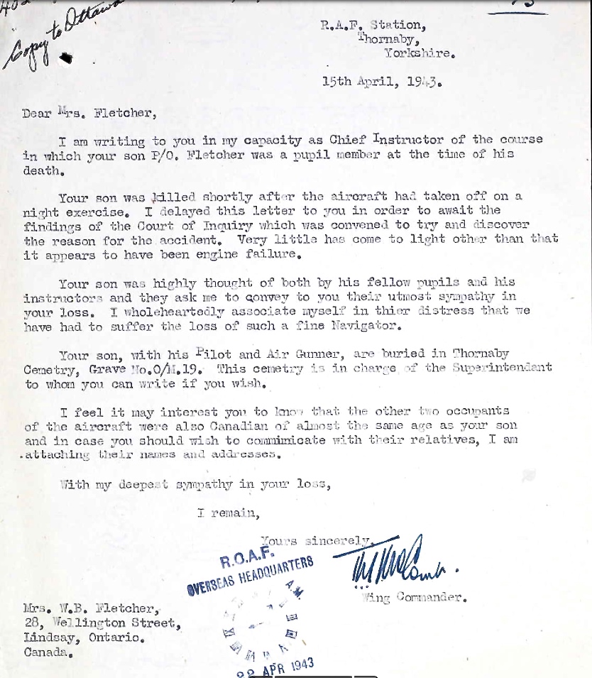 Son of William Edward and Carrie E. Fletcher, of Lindsay, Ontario, Canada.