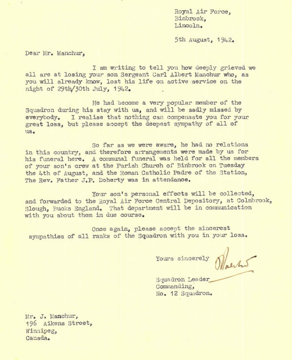 Son of Joseph and Anna Manchur, of Winnipeg, Manitoba.