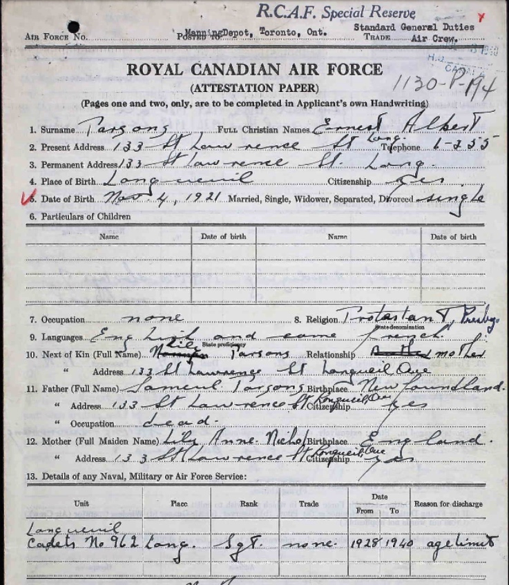 Son of Samuel and Lily Parsons, of Montreal, Province of Quebec, Canada.