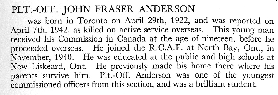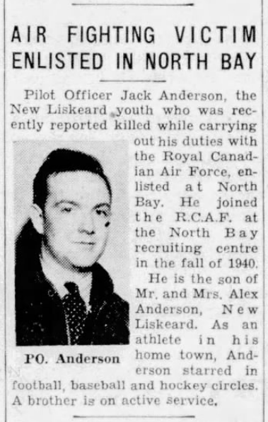 Son of Alex and Isabella Anderson, of New Liskeard, Ontario, Canada.