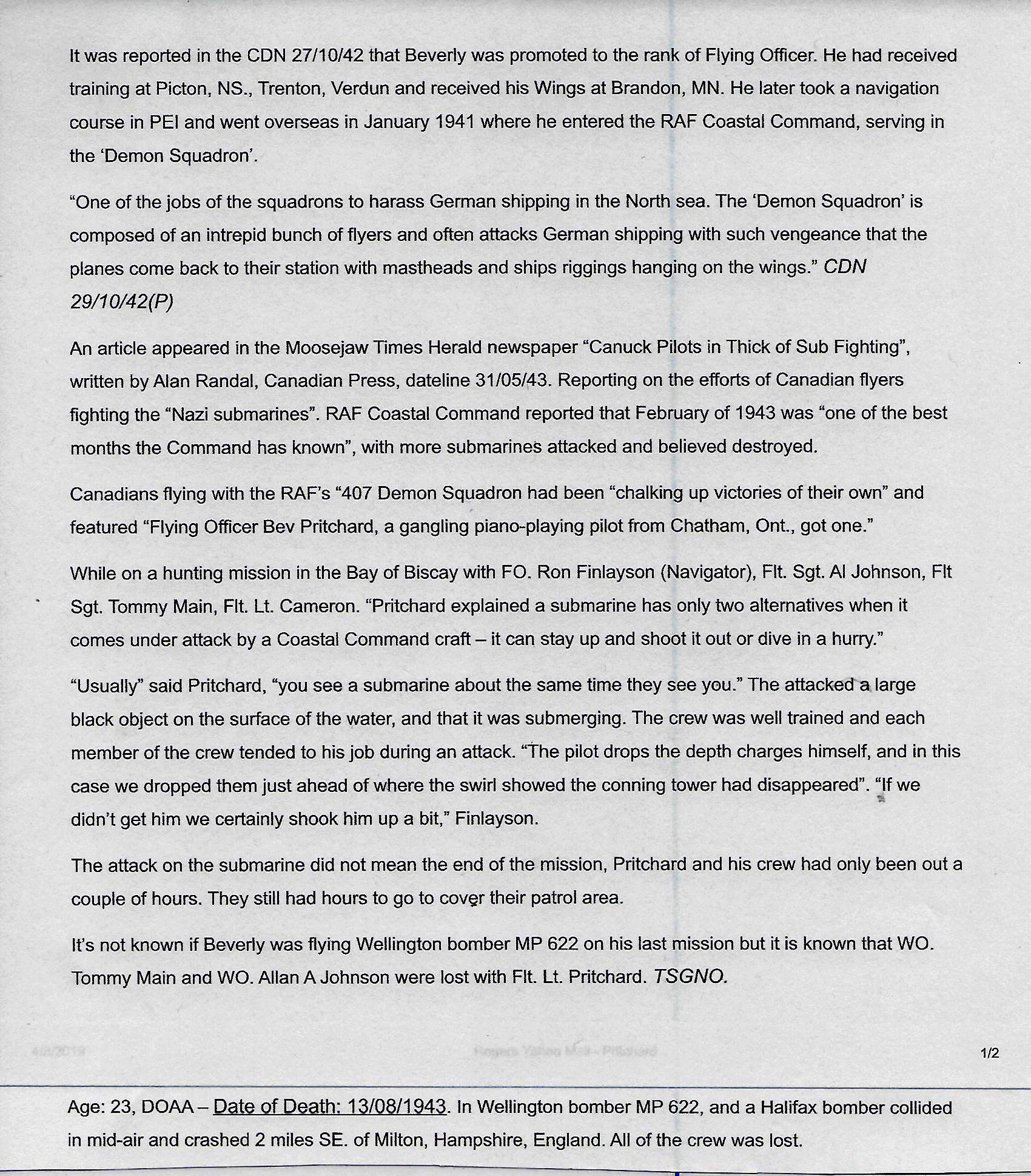 Digital gallery of Flight Lieutenant Beverley Wayne Pritchard
