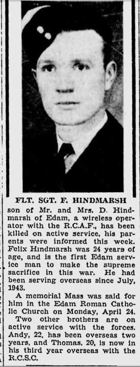 Son of Andrew and Catherine Hindmarsh, of Edam, Saskatchewan, Canada.
