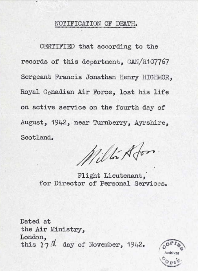 Son of William and Ann Jane Highmoor, of Empress, Alberta.