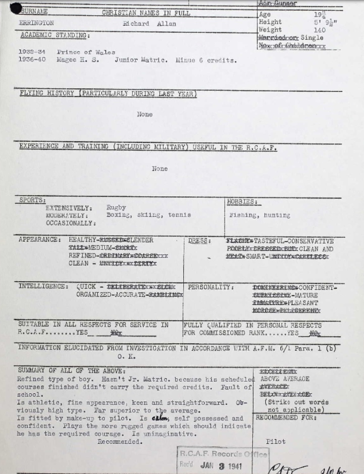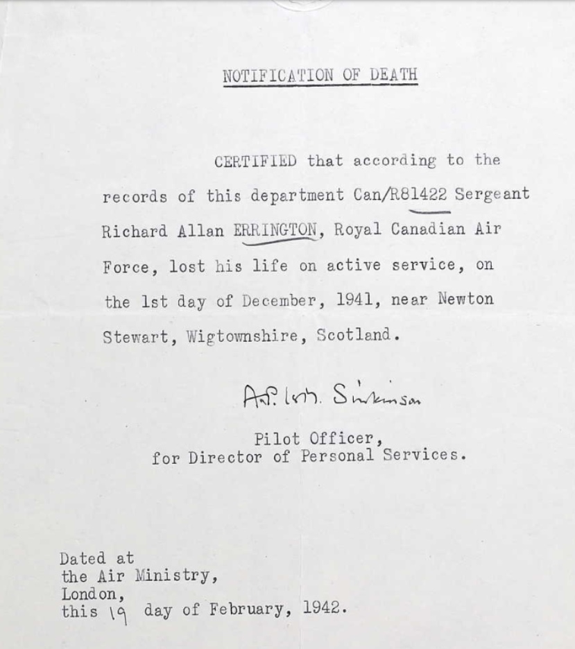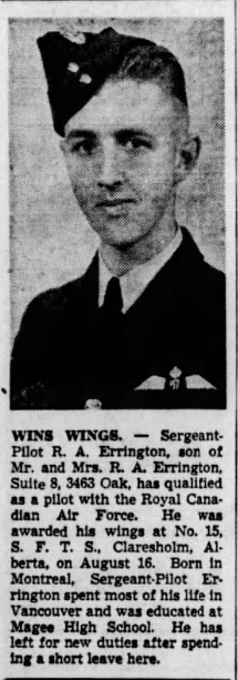 Son of Richard Allen Errington and Charlotte Lucy Errington, of Vancouver, British Columbia.