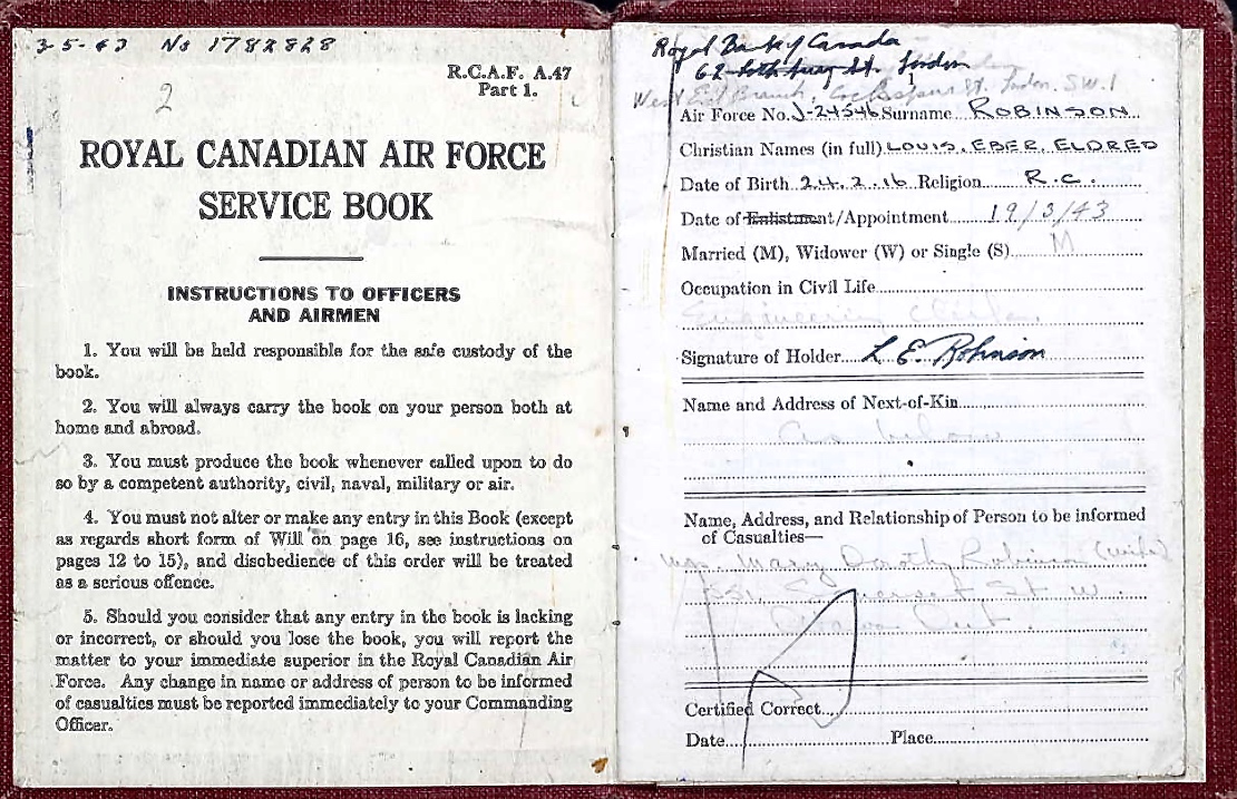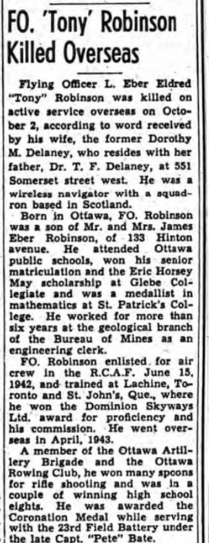 Son of James Eber Robinson and Marie Josephine Robinson, of Ottawa, Ontario, Canada; husband of Mary Dorothy Robinson, of Ottawa.