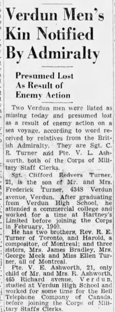 The HALIFAX MEMORIAL in Nova Scotia's capital, erected in Point Pleasant Park, is one of the few tangible reminders of the men who died at sea. Twenty-four ships were lost by the Royal Canadian Navy in the Second World War and nearly 2,000 members of the RCN lost their lives.