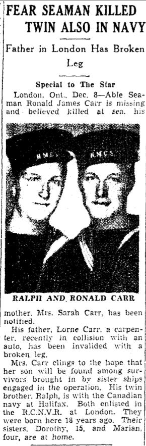 The HALIFAX MEMORIAL in Nova Scotia's capital, erected in Point Pleasant Park, is one of the few tangible reminders of the men who died at sea. Twenty-four ships were lost by the Royal Canadian Navy in the Second World War and nearly 2,000 members of the RCN lost their lives.