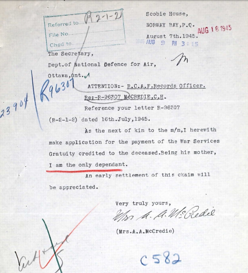 Son of James Harvey McCredie and Agatha Adelaide McCredie, of Smiths Falls.