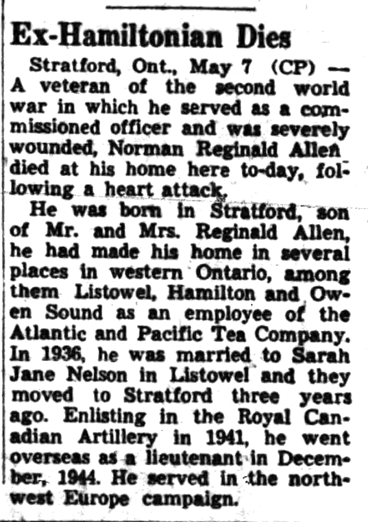 Son of John R. Allen and Nina G. Allen, of Stratford. Husband of Sarah Allen of Stratford.