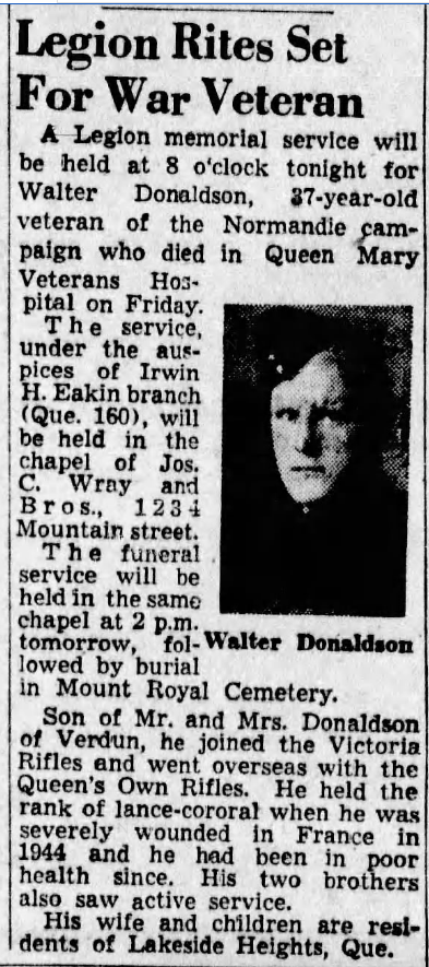 Son of Duncan and Ada Donaldson, of Verdun; husband of Margaret Donaldson, of Lakeside Heights.