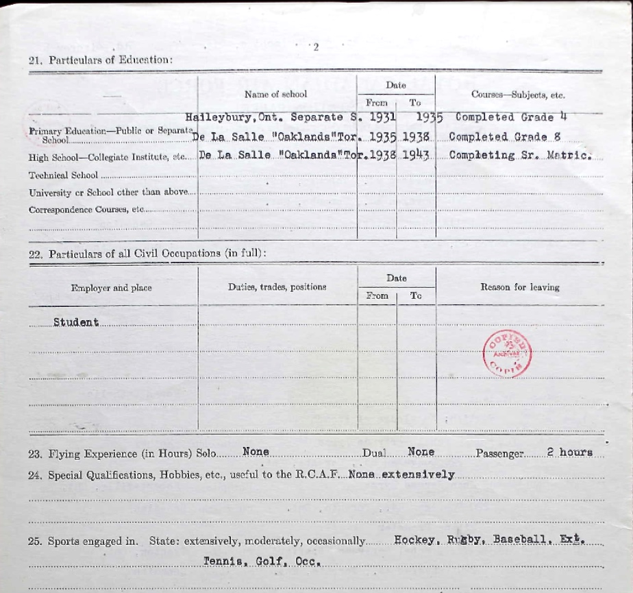 Son of John Jerome and Mabel Gertrude Byrne of Toronto, Ontario.