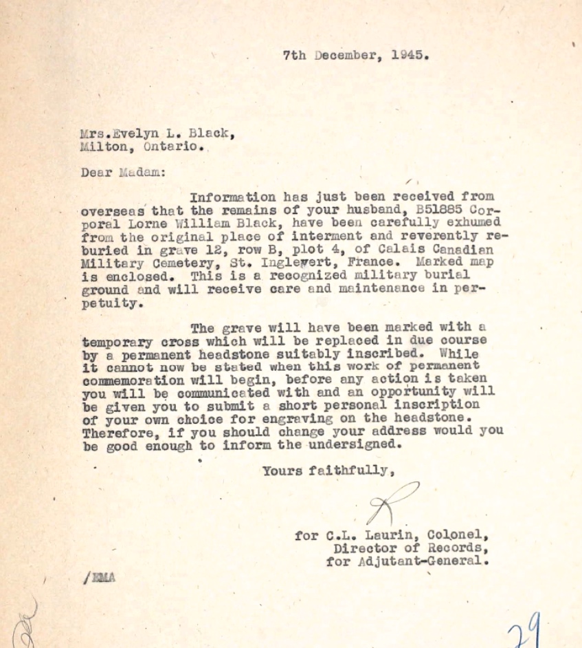 Son of William and Florence Black; husband of Evelyn Black, of Milton, Ontario.