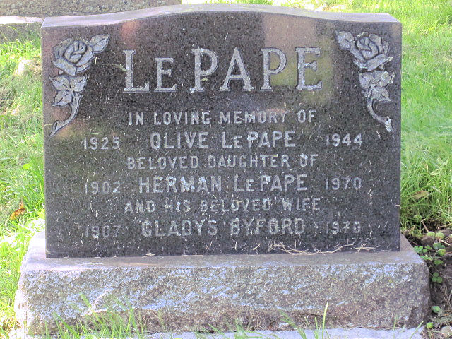 Daughter of Herman and Gladys Le Pape, of Montreal, Quebec.