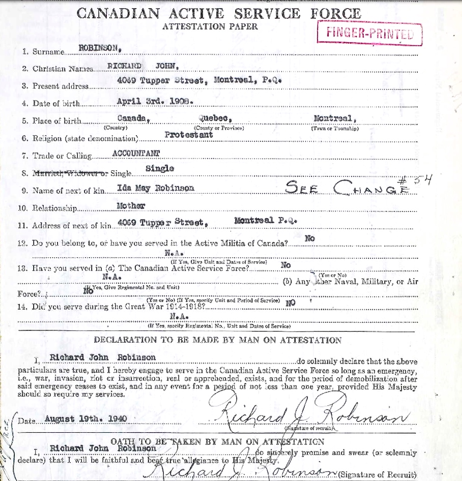 Son of Ida Robinson, of Westmount; husband of Marie R. R. Robinson, of Montreal.
