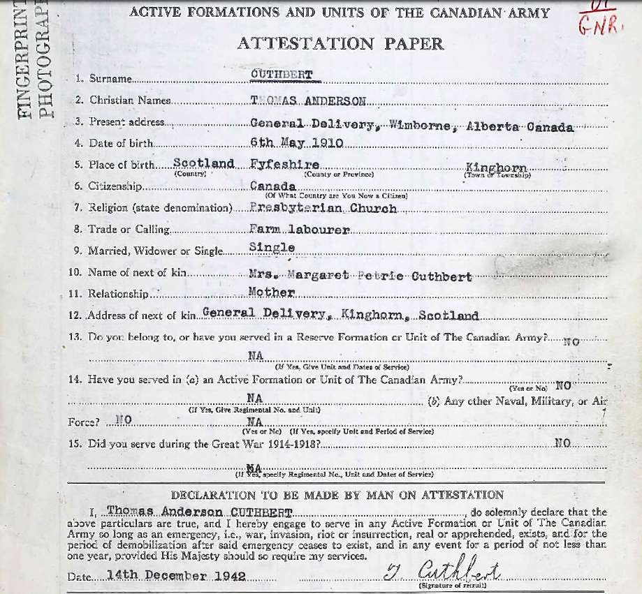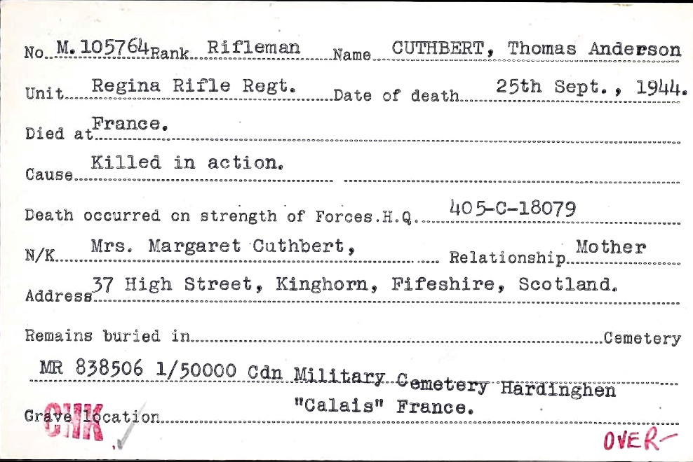 Son of John and Margaret Petrie Cuthbert, of Kinghorn, Fife, Scotland.