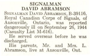 Son of Louis and Mary Abramson, of Ansonville, Ontario.