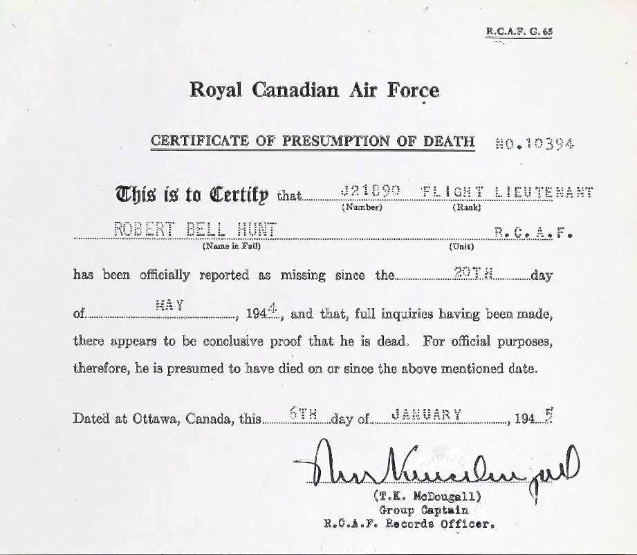 Digital gallery of Flight Lieutenant Navigator Robert Bell Hunt