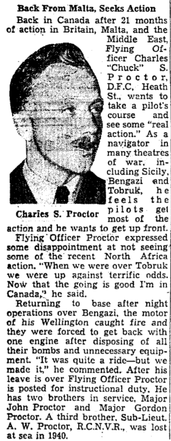 Son of Charles Russell Weller Proctor and Mona Louisa Proctor, of Toronto; husband of Helen Isabelle Proctor, of Toronto, Ontario.