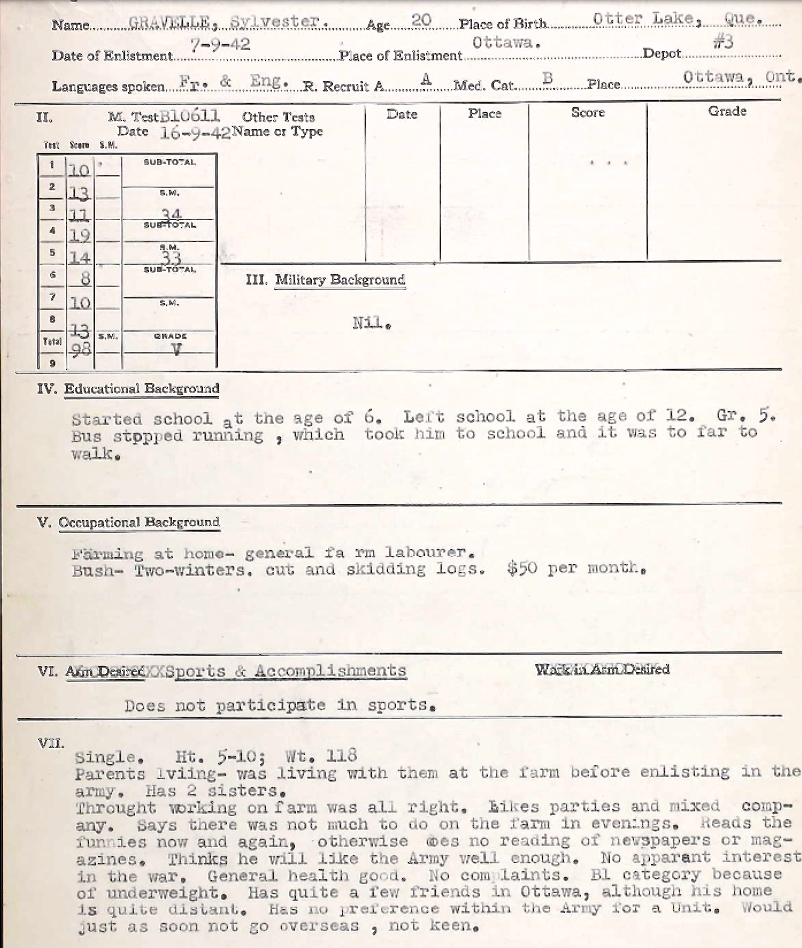 Son of Jasper and Louise Gravelle, of Otter Lake, Quebec.