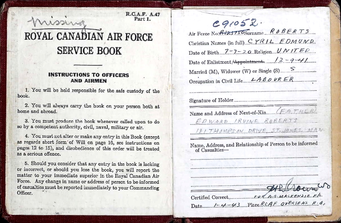 Digital gallery of Pilot Officer Cyril Edmund Roberts