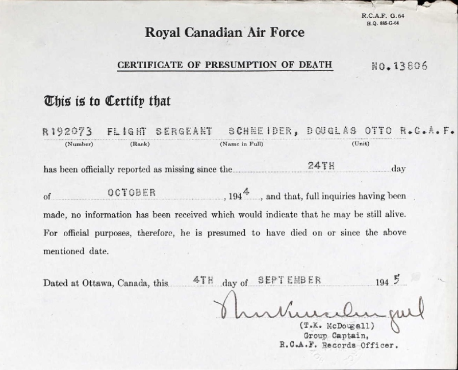 Digital gallery of Flight Sergeant Douglas Otto Schneider