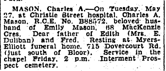 TORONTO (PROSPECT) CEMETERY Ontario, Canada