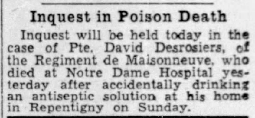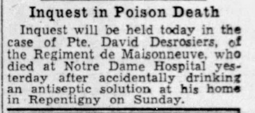 Son of Mr. and Mrs. Victor Desrosiers, of Ste. Sophie de Levrard; husband of Germaine Desrosiers, of Montreal.