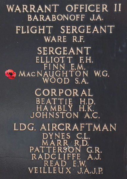 Commemorated on the St. Donat Memorial and RCAF Liberator III Memorial.