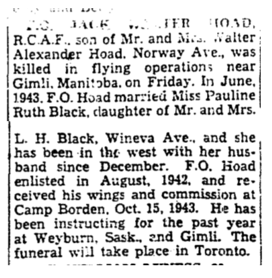 Son of Walter Alexander and Kate Ethel Hoad, of Toronto, husband of Paulene R. Hoad, of Toronto.