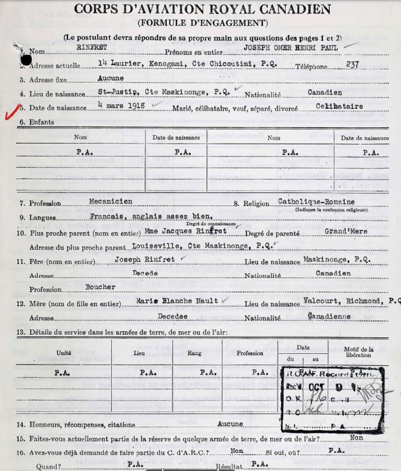 Digital gallery of Corporal Joseph Omer Henri Paul Rinfret