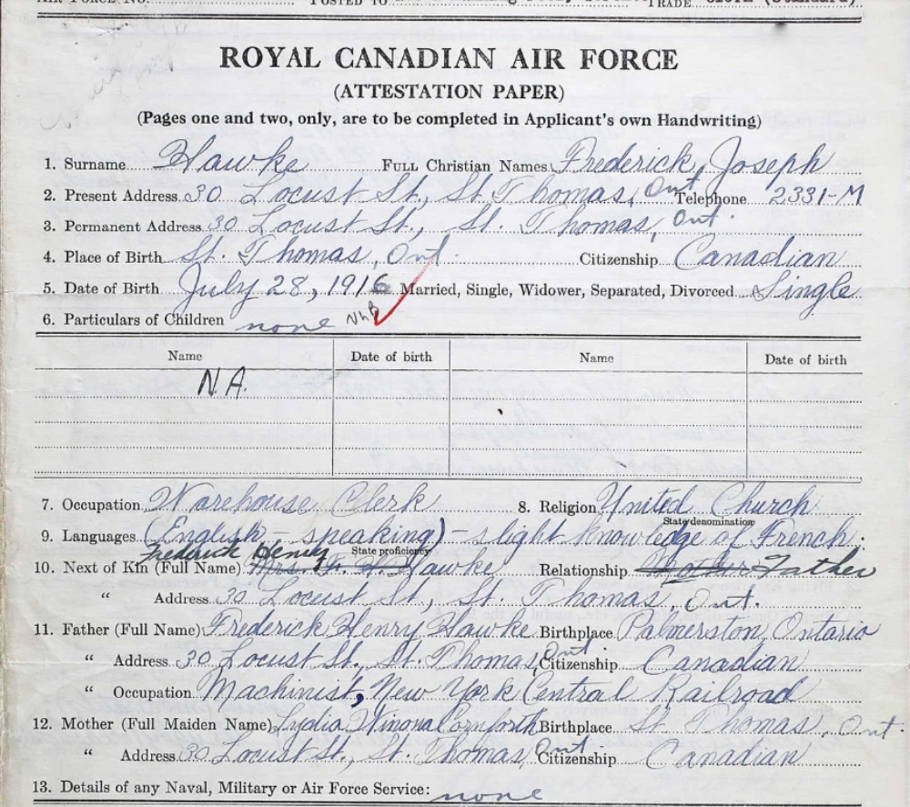 Son of Fred H. Hawke and Winona Hawke, of St. Thomas, Ontario.