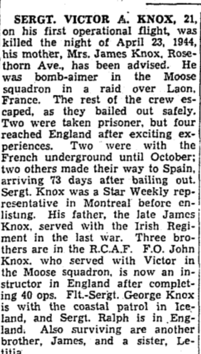 Son of James and Letitia Knox, of Toronto, Ontario.