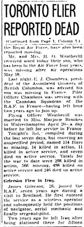 Page 603 of the Second World War Book of Remembrance.