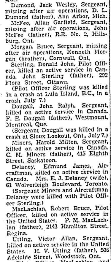 His brother Henry Forbes Utting died on March 1, 1957 while serving with the Royal Canadian Navy.