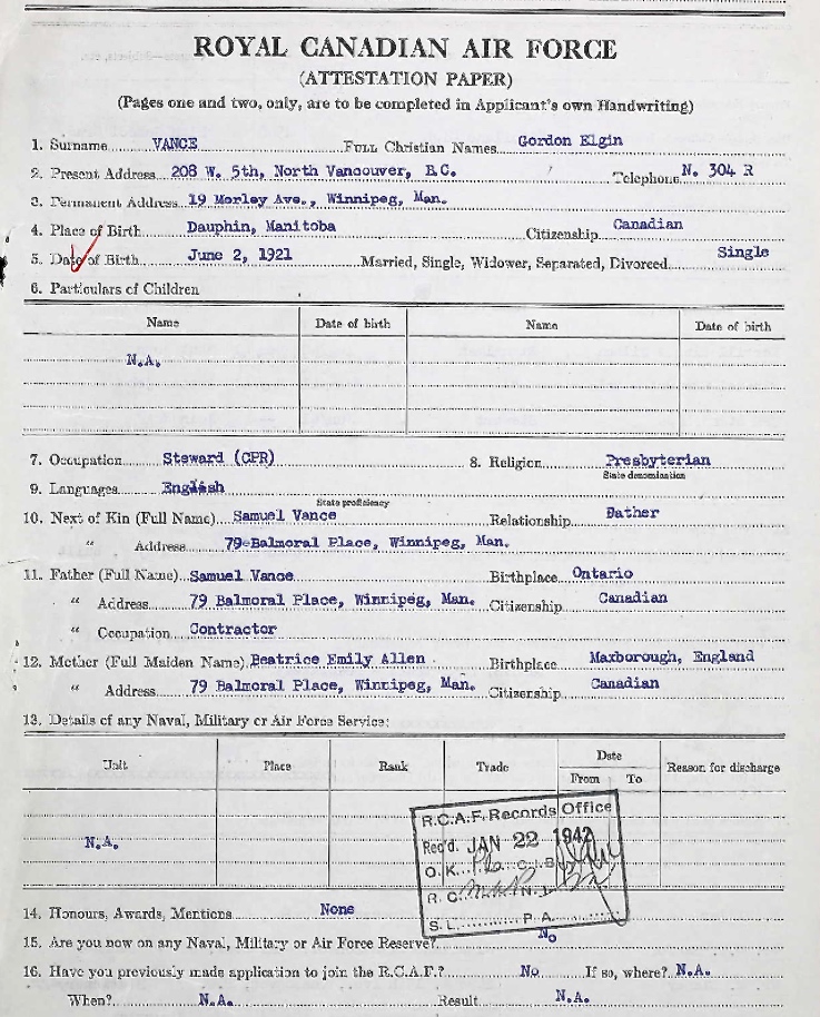 Digital gallery of Flying Officer Gordon Elgin Vance