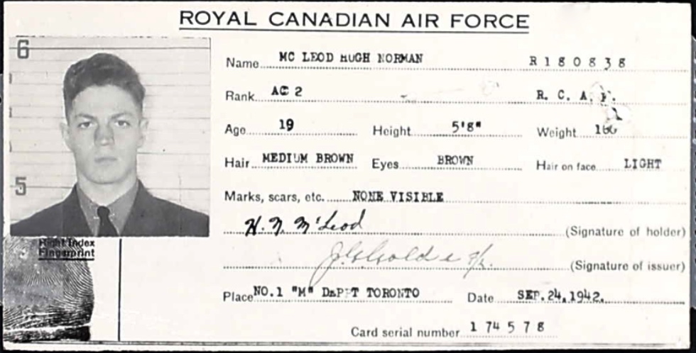 Son of William and Mabel McLeod, of Ottawa, Ontario. Pilot Officer McLeod was the Bomb Aimer in the crew of the 432 (Leaside) Squadron. According to Flying Officer Gordon Lyle Stokx, (retired) their crew was not yet on Operational status with the Squadron on 16 Sept 1944. Pilot Officer McLeod volunteered to go on a raid to Kiel, Germany as a replacement on another crew. Their Halifax bomber collided with another aircraft over the target and crashed. This was his first combat mission.