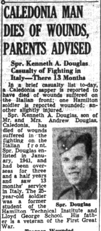 Son of Andrew and Annie Douglas, of Caledonia, Ontario, Canada.