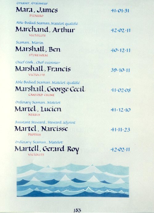 Page 183 of the Merchant Navy Book of Remembrance.