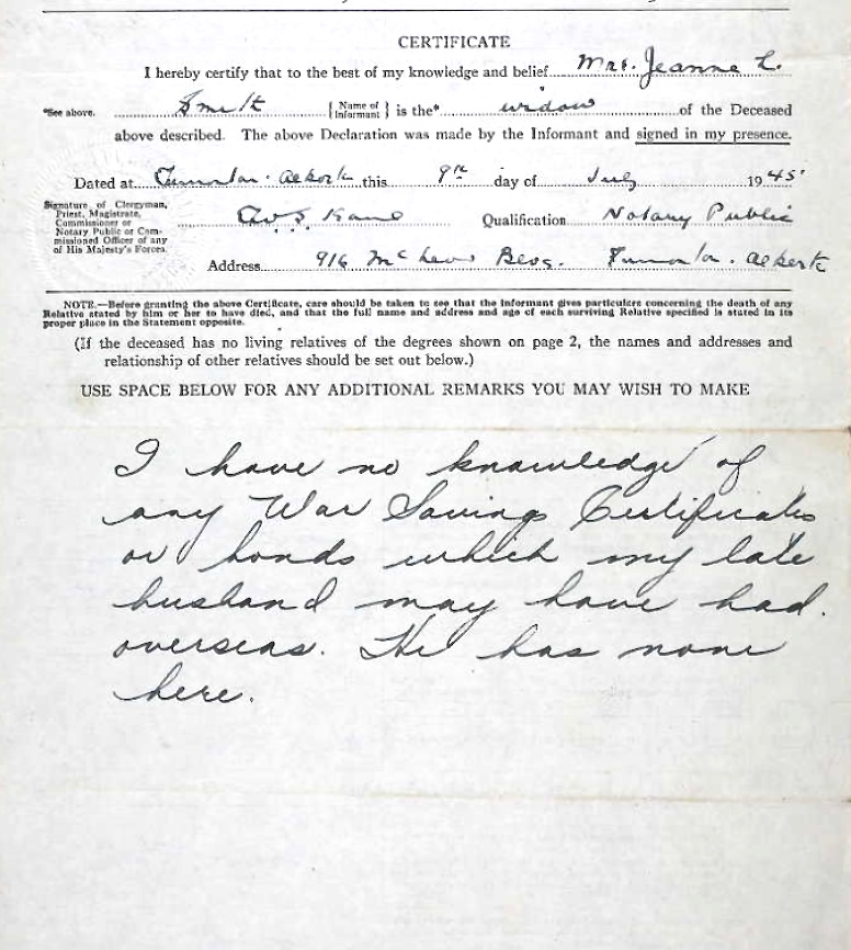 Son of Harry and Ada Smith of Edmonton, Alberta.
