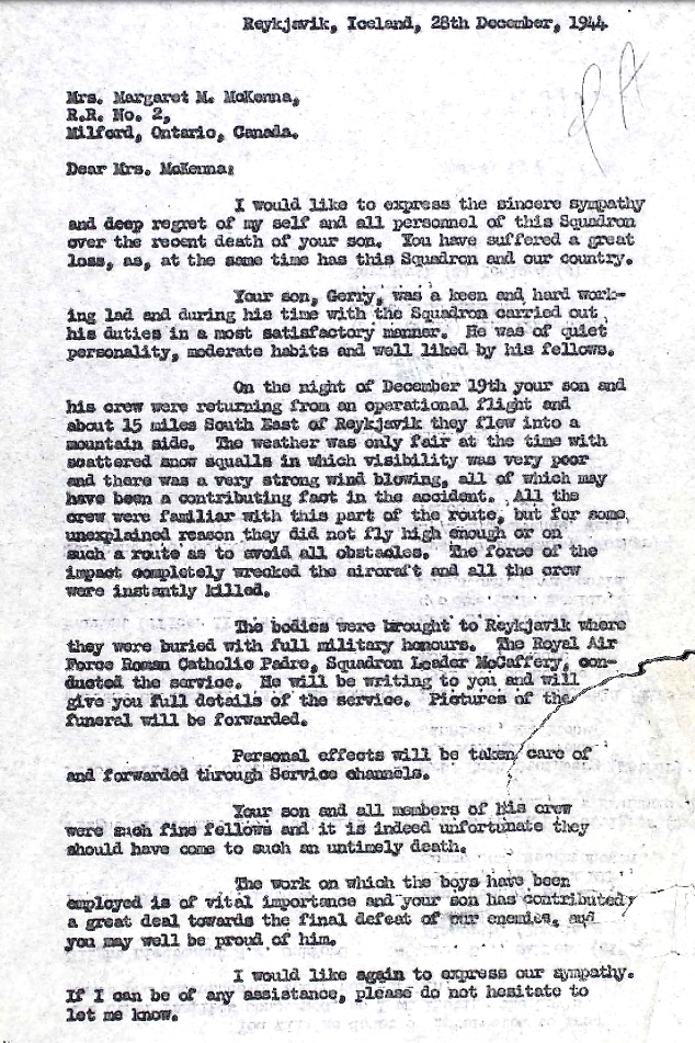 Son of Arthur P. and Margaret McKenna, of Milford, Ontario.