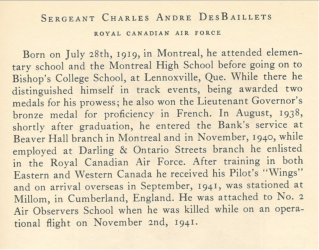 Son of E. C. Des Baillets and Helene Des Baillets, of Montreal, Province of Quebec, Canada.