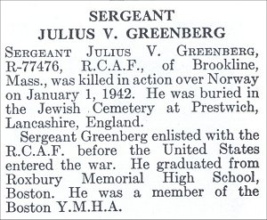 Born 2 July 1917, Peaks Island, Portland, Maine, U.S.A. Son of William J. and Dora (née Rosenthal) of West Los Angles, California, U.S.A. Husband of Dorothy Frances (née Clough) whom he married on 20 September 1941. He was the cousin of George A. Gordon, Brooklyn, Mass.