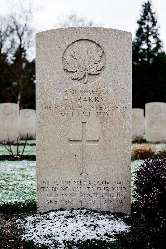 Historical Information: The Netherlands fell to the Germans in May 1940 and was not re-entered by Allied forces until September 1944. The great majority of those buried in Holten Canadian War Cemetery died during the last stages of the war in Holland, during the advance of the Canadian 2nd Corps into northern Germany, and across the Ems in April and the first days of May 1945. After the end of hostilities the remains of over 1,300 Canadian soldiers were brought together into this cemetery.