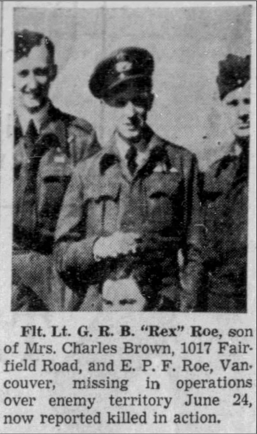 Son of Edward Price Fitzgerald Roe and Matilda Henrietta Roe, of Vancouver, British Columbia, Canada.