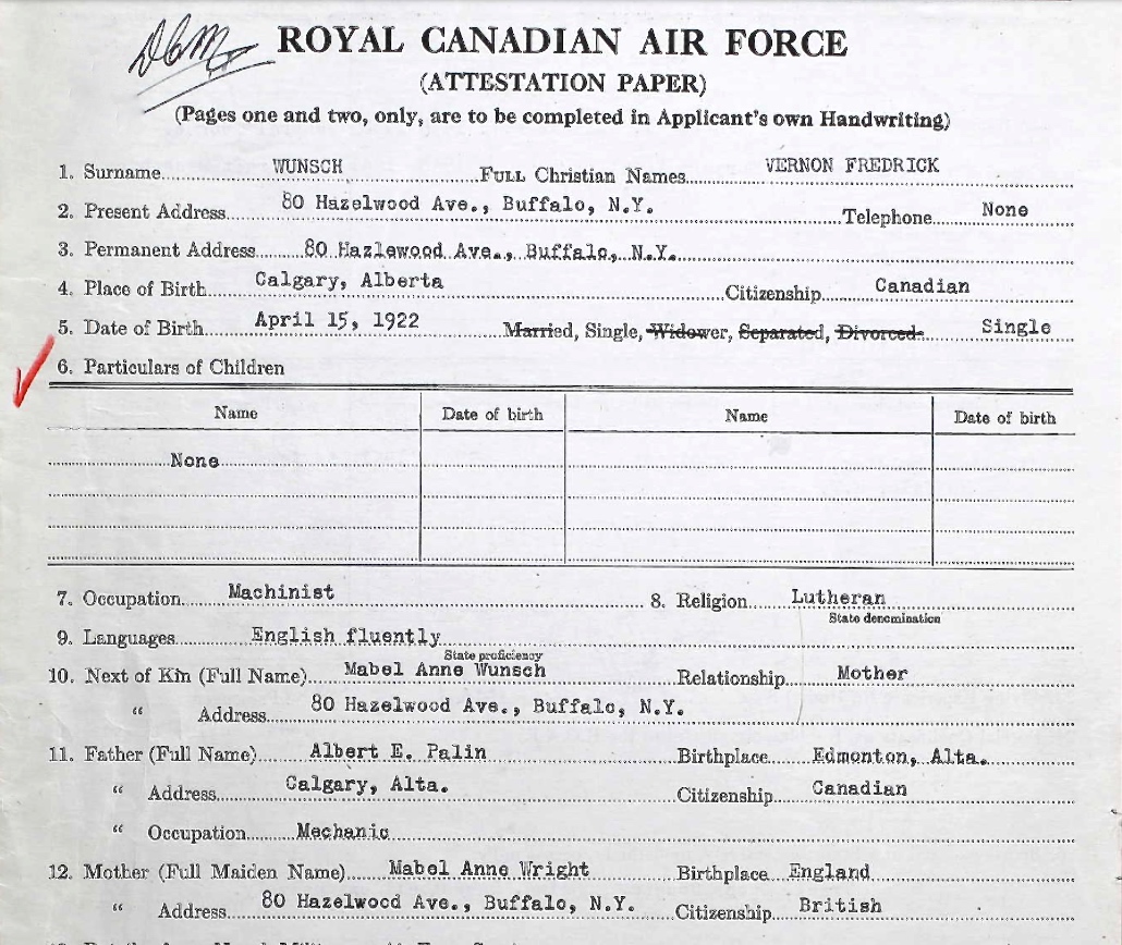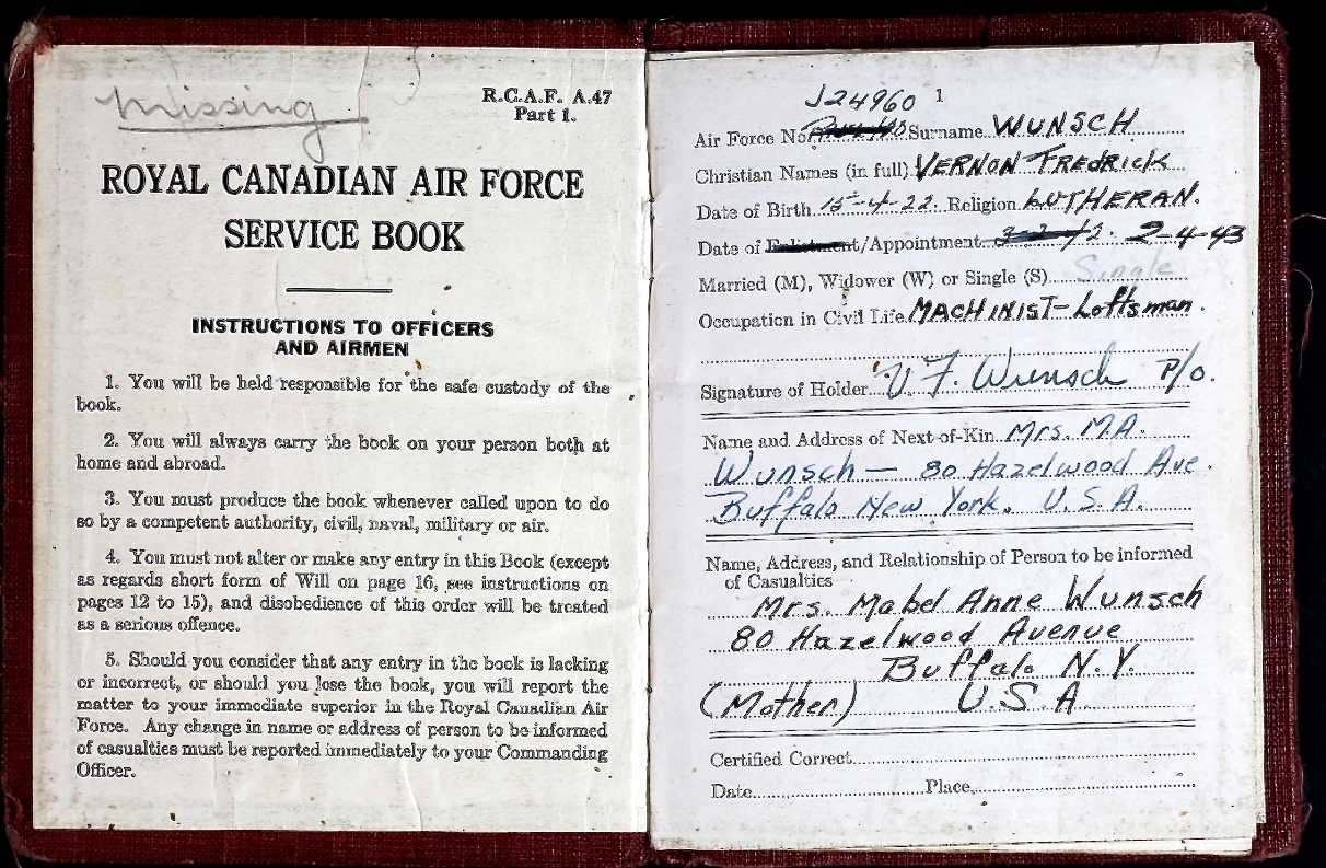 Digital gallery of Flying Officer Vernon Frederick Wunsch