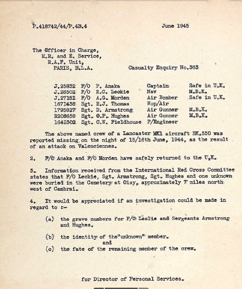 Oisy-le-Verger is a village and commune about 25kms east of Arras and 6km north of Marquion which is on the main Arras to Cambrai road (D939). From Marquion take the D15 and D14 roads towards Oisy-le-Verger. In Oisy follow the direction signs to Oisy-Centre. At the centre of the village continue on the main road towards Epinoy (D21) and about 500m after the Mairie turn left into the Rue Joseph Foulon. The cemetery is 30m on the right. The four graves are close to the entrance.