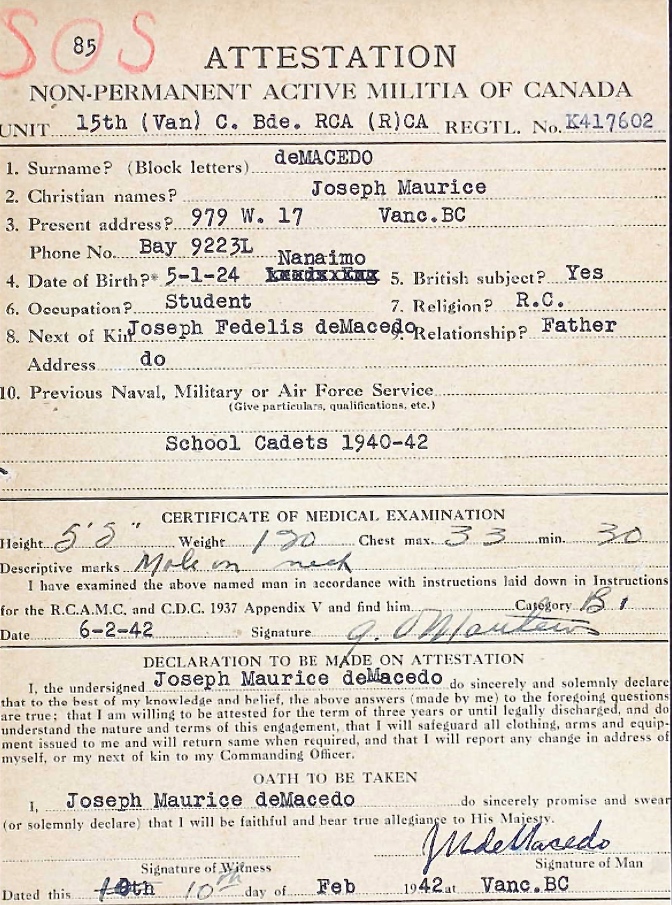 Digital gallery of Pilot Officer Joseph Maurice De Macedo