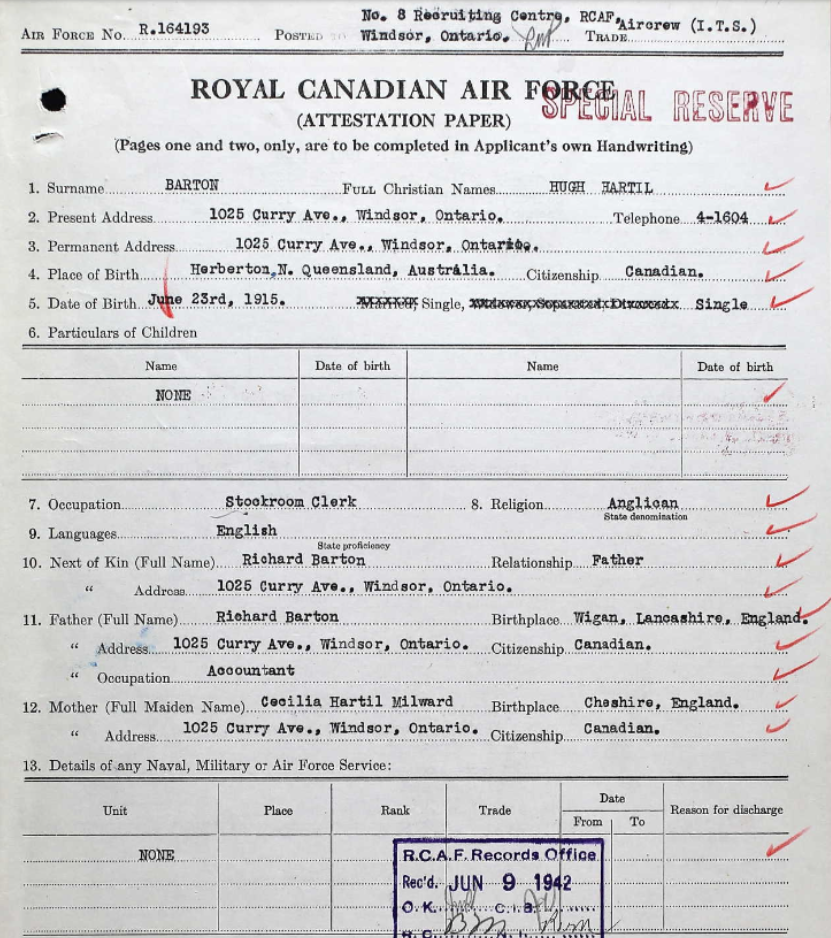 Son of Richard and Cecelia Hartil Barton, of Windsor, Ontario, Canada. B.A. (University of Western Ontario, London).