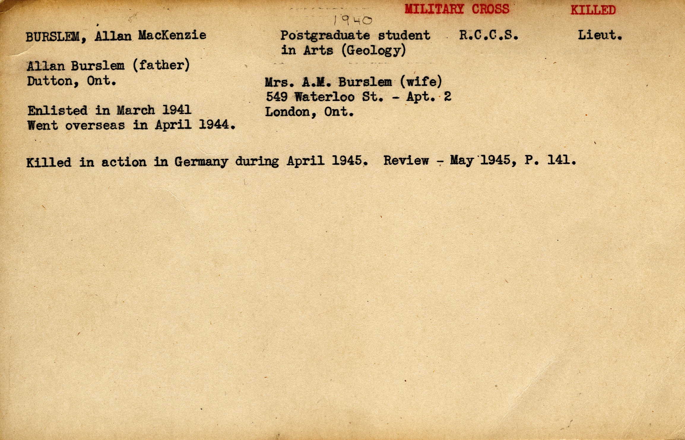 Digital gallery of Lieutenant Allan Mackenzie Burslem