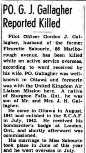 Son of John Henry and Ernestine Gallagher; husband of Fleurette Gallagher, of Ottawa Ontario.